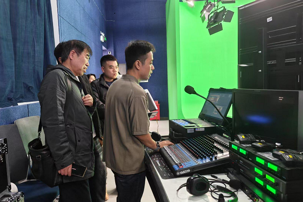 调研会上,院领导介绍了传媒学院人才引进成果及专业建设特色,副院长成骏详细介绍融媒体实验教学示范中心建设情况。该中心为省级实验教学示范中心,实验室建设速度快、设备齐全,特别是播音主持专业实验室。实验中心副主任刘徽龙通过 PPT 展示实验室四大类型:播音配音与录音实验室、数媒动漫实验室、融合媒体与演播实验室、舞台演艺表演实验室,以及未来三年建设规划,包括混合现实多功能实训基地、融媒体传播站与监测实验室等。